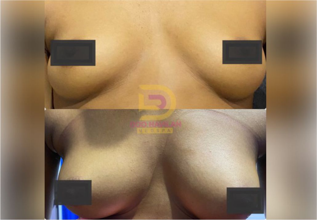 The before-and-after results demonstrate visibly improved breast projection, balanced contours, and a more confident silhouette with minimal downtime.