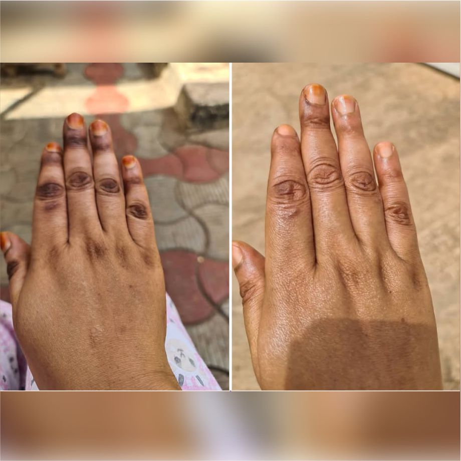 The results show smoother, brighter knuckles with improved skin clarity and healthier-looking hands.